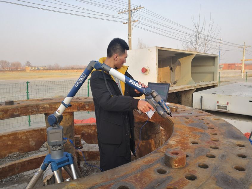 刀盤法蘭的安裝是一個特殊的安裝環(huán)境——地下,正是由于此工作需要在地下進行,因此絕對不允許存在返工的情況發(fā)生。本次的設計、制作、加工均需要非常高的精度,必須一次成功。我們利用高精度的激光掃描技術(shù)對該零件進行掃描后精確出圖。