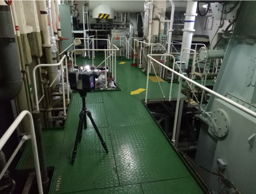 新加坡貨輪掃描現(xiàn)場,利用三維激光掃描儀對貨輪復(fù)雜結(jié)構(gòu)進(jìn)行3D掃描
