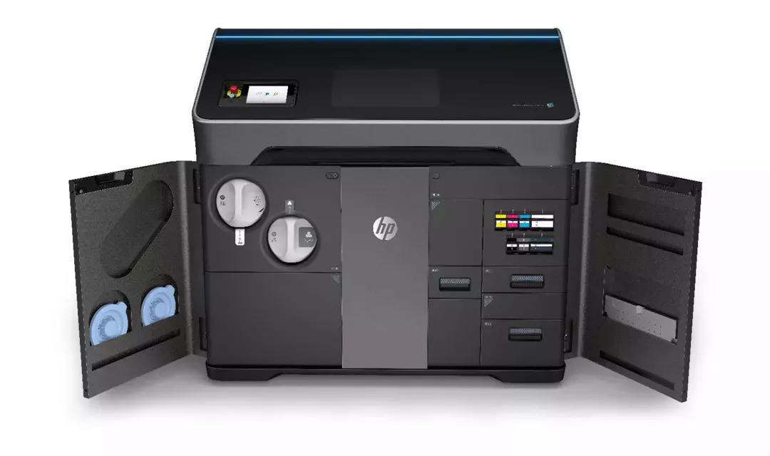 基于惠普?MJF?多射流熔融技術,鋪粉模塊在打印平臺上鋪設尼龍粉末材料,熱噴頭模塊噴射助融劑和細化劑。鋪粉模塊上下移動鋪設一層均勻粉末,熱噴頭模塊左右移動噴射兩種試劑,同時通過兩側(cè)熱源加熱融化打印區(qū)域的材料。MJF 彩色 3D 打印機配備了 CMYK 四色墨盒,可直接 3D 打印全彩模型。