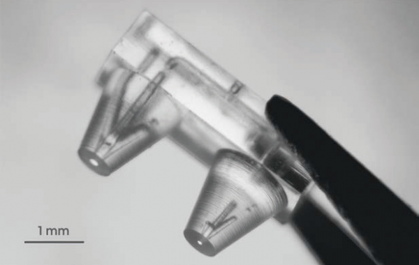 ? ? ? 多光子聚合 (MPP: Multiphoton-polymerization) 是一種能夠在亞微米分辨率下生產(chǎn)任意形狀聚合物結(jié)構(gòu)的 3D 打印技術(shù)。首先,通過在載玻片上滴注與光引發(fā)劑混合的聚合物材料,然后預(yù)烘焙,制備光致抗蝕劑樣品。然后,使用激光直寫技術(shù)來制造 3D 微結(jié)構(gòu)。因此,由于一種稱為光聚合的過程,聚合物在受到激光輻射影響的下落處硬化。最后,將微結(jié)構(gòu)浸入有機(jī)溶劑中以顯影未聚合的光致抗蝕劑。? ? ? MPP 通常用于微電子器件的制造,因為它允許創(chuàng)建非常小的以及高精度的詳細(xì)結(jié)構(gòu)此外,由于光線高度聚焦,因此可用于創(chuàng)建復(fù)雜的 3D 形狀。
