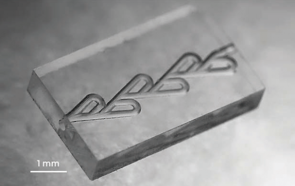 ? ? ? 復(fù)合制造方法能夠通過激光燒蝕從熔融二氧化硅中快速生產(chǎn)通道,而多光子聚合用于在通道內(nèi)集成任意幾何形狀的精細(xì)網(wǎng)格 3D 過濾器。為了證明這種方法的有效性,生產(chǎn)了一種用于新一代藥物開發(fā)和生產(chǎn)的微流體大分子分離器原型。它被設(shè)計用于在混合溶液中分離低分子量和高分子量物質(zhì)。這些器件所需的聚合物和玻璃部件在制造過程中自由選擇和結(jié)合,為器件帶來了新的功能水平,并簡化了制造工作流程。由于多光子聚合的多功能性,可以以很高的分辨率實(shí)現(xiàn)各種復(fù)雜幾何形狀的過濾器。例如,該過濾器的孔隙為 500 nm 寬。