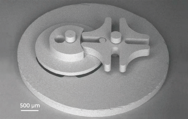 ? ? ? 日內(nèi)瓦齒輪是一種任意形狀的微機(jī)械部件,是產(chǎn)生間歇性旋轉(zhuǎn)運(yùn)動常用的裝置之一。包含兩個相互嚙合的元件。通過將一個齒輪旋轉(zhuǎn) 360°,另一個齒輪以固定的 90°增量移動。? ? ? 使用 SLE 技術(shù),這些機(jī)構(gòu)可以由單片玻璃制成,而不需要組裝步驟。由于無需組裝該結(jié)構(gòu)可以小規(guī)模生產(chǎn)(低至數(shù)百微米)而無需復(fù)雜的微操作。此外,通過將一個小磁體連接到機(jī)構(gòu)上并將其放置在旋轉(zhuǎn)磁體上,可以實(shí)現(xiàn)結(jié)構(gòu)的平穩(wěn)連續(xù)運(yùn)動。這是由于結(jié)構(gòu)的不同運(yùn)動部件之間的間隙非常小 (<10 μm) 和很好的表面粗糙度 (~200 nm RMS) ,更大限度地減少了過度摩擦。