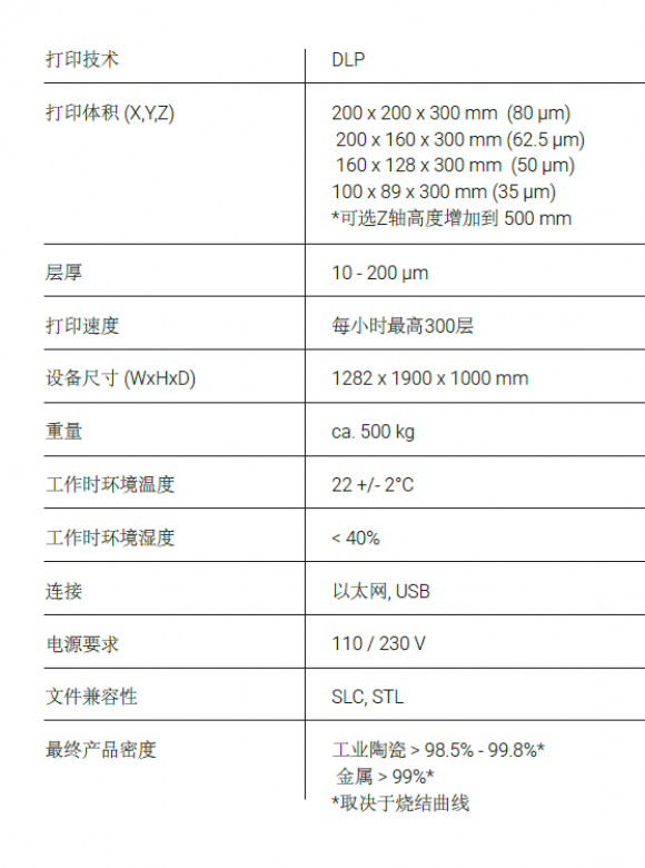 一臺(tái)機(jī)器具有較大的打印體積和獨(dú)特的 3D 打印能力,可同時(shí)對(duì)先進(jìn)的陶瓷和金屬進(jìn)行 3D 打印,并針對(duì)二氧化硅殼和核的較高精度鑄造應(yīng)用進(jìn)行了優(yōu)化。